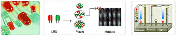 LED는 약 50,000시간 이상의 반영구적인 수명과 저소비전력으로 광고간판, 자동차점멸램프,